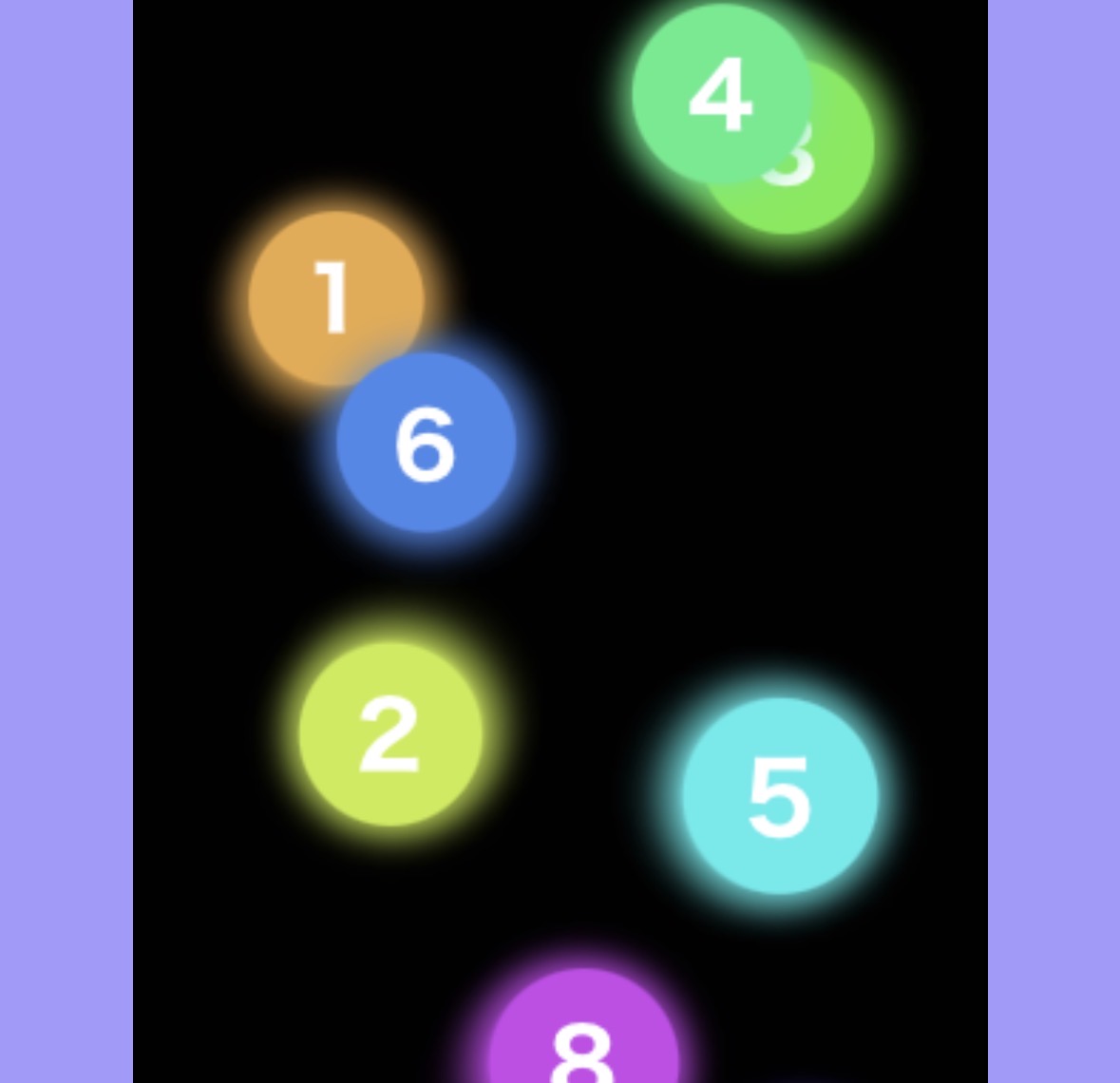 画面の中を数字のボールが跳ね回っています。「1」から順番に見つけて、指でタップしましょう。 正解すると「ピコーン♪」と音が鳴って、数字のボールが弾けます。